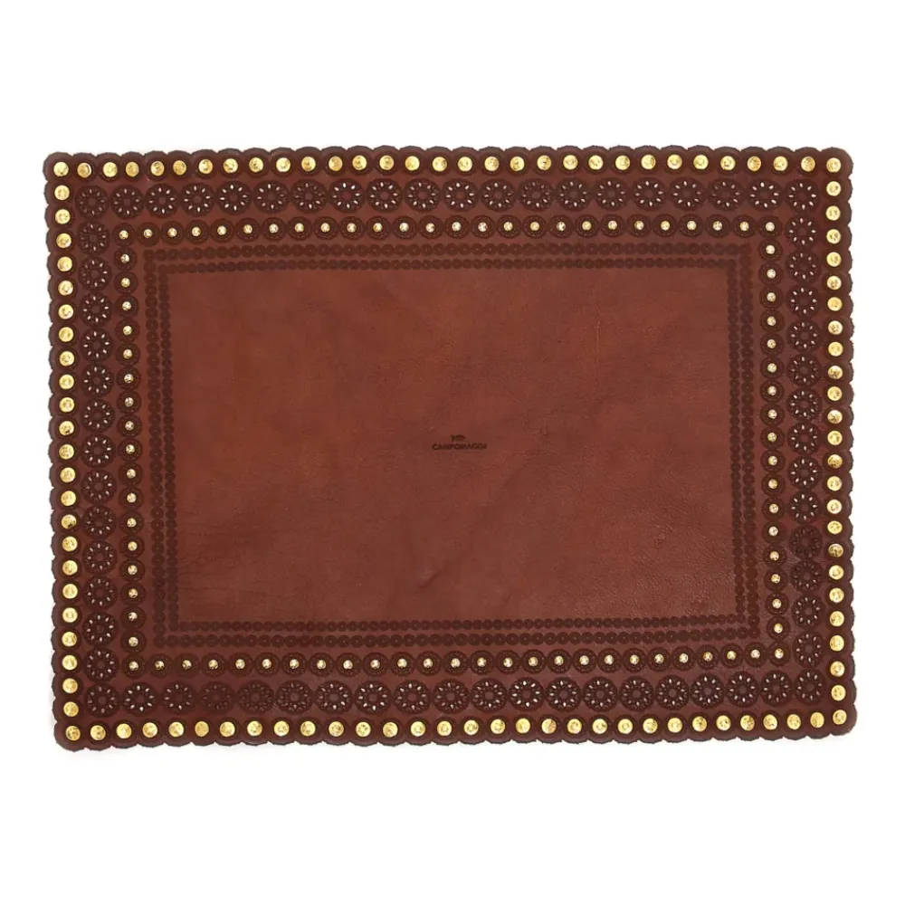 Ein fein verziertes Tischset aus echtem Leder für diejenigen, die die Kunst des Empfangens mit Eleganz kultivieren.