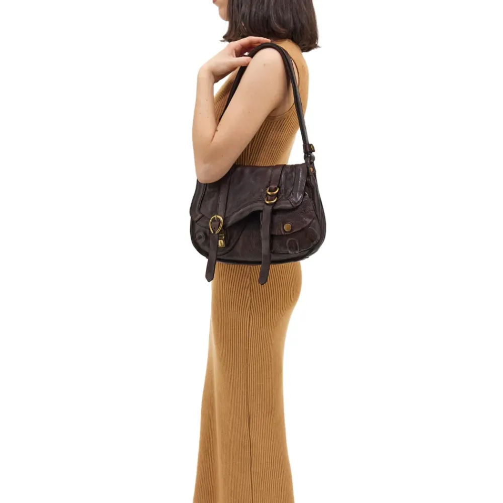 Mittelgroße Schultertasche „Arya“ aus Leder in Dunkelbraun