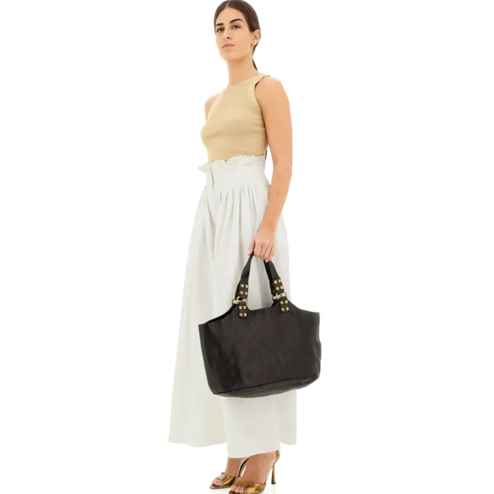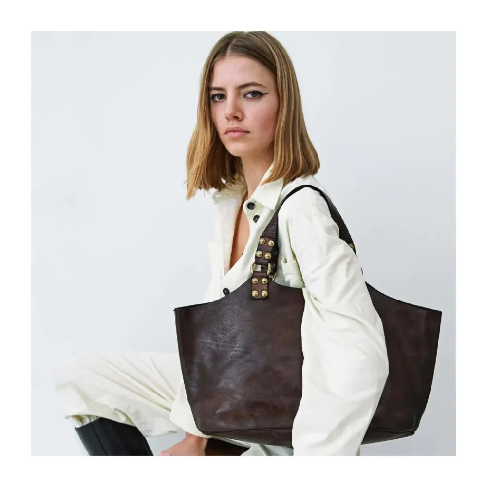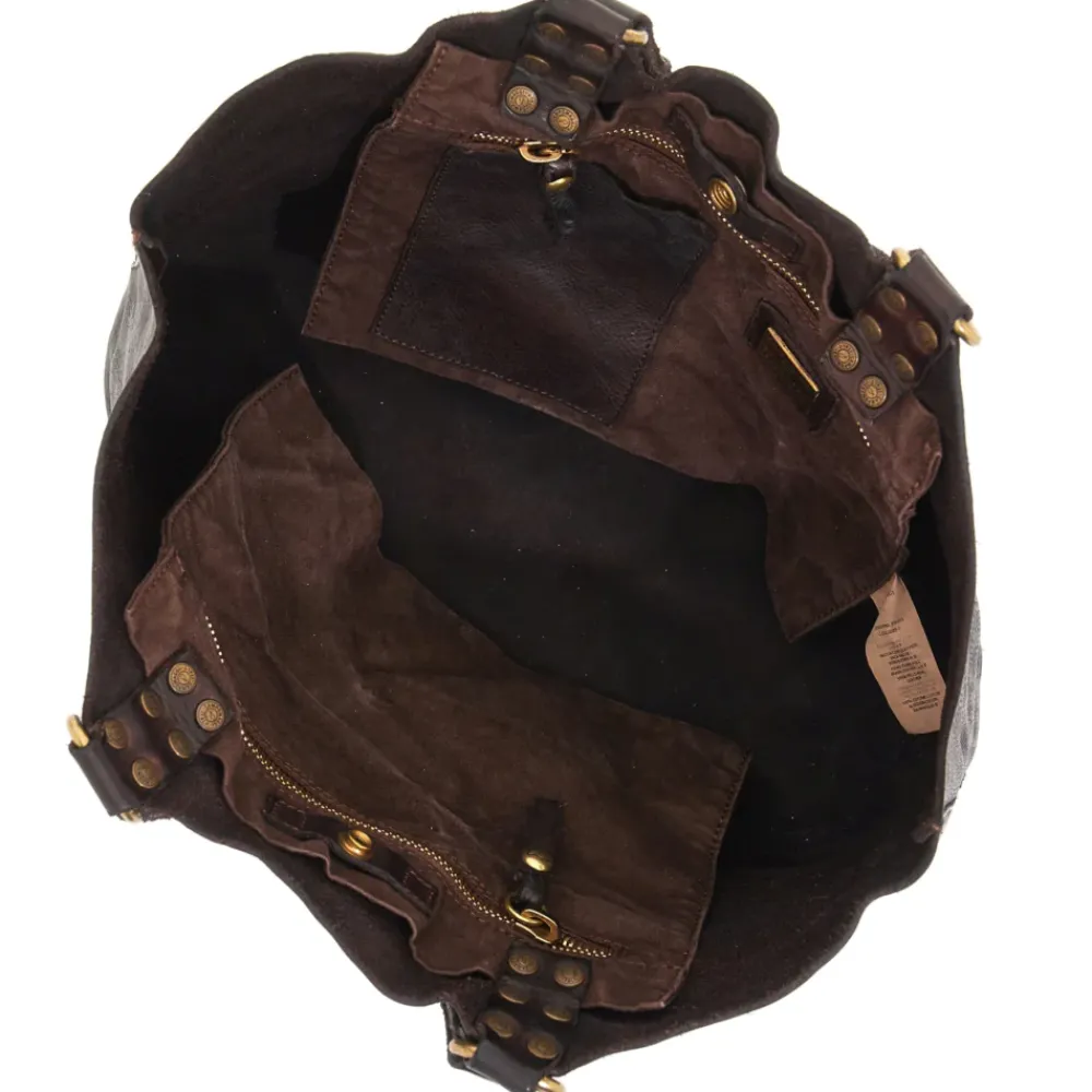 Dieser Shopper von Campomaggi wird aus hochwertigem natürlichem, durchgefärbtem Rindsleder gefertigt, um eine lange Lebensdauer zu gewährleisten. Geräumig und vielseitig, ist sie der perfekte Begleiter für jede Gelegenheit. Entdecken Sie mit Campomaggi die Schönheit der italienischen Handwerkskunst. • Druckknopfverschluss • Goldfarbene Beschläge • Zwei Innentaschen mit Reißverschluss • Handytasche • Stifthalter • 22 cm lange Henkel • Verstellbarer und abnehmbarer Schultergurt, 3 cm breit und 100 cm lang • Staubbeutel aus Baumwolle und Pflegecreme im Lieferumfang enthalten • Made in Italy