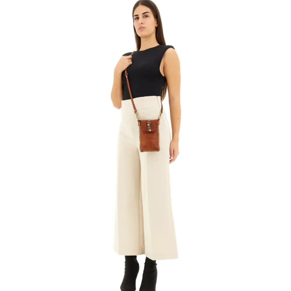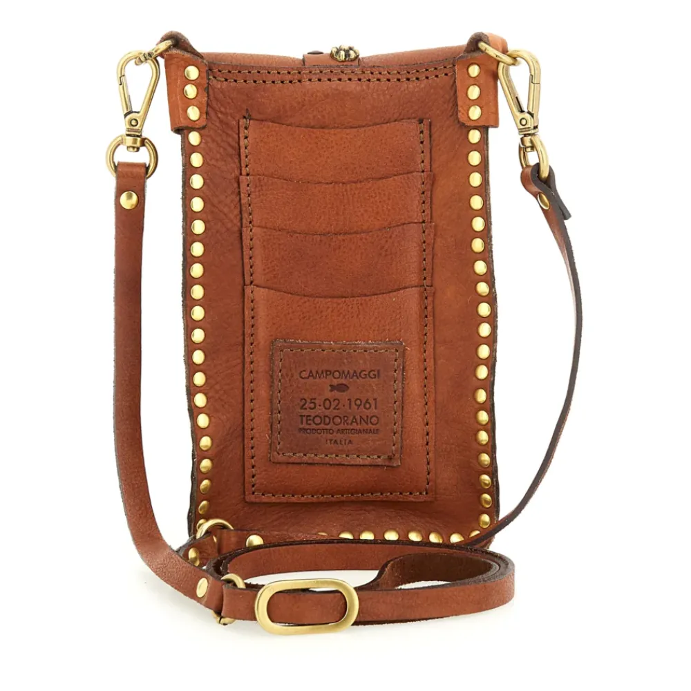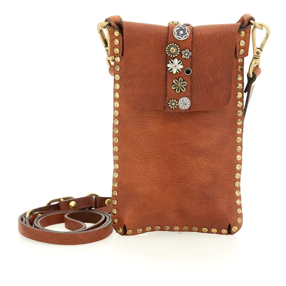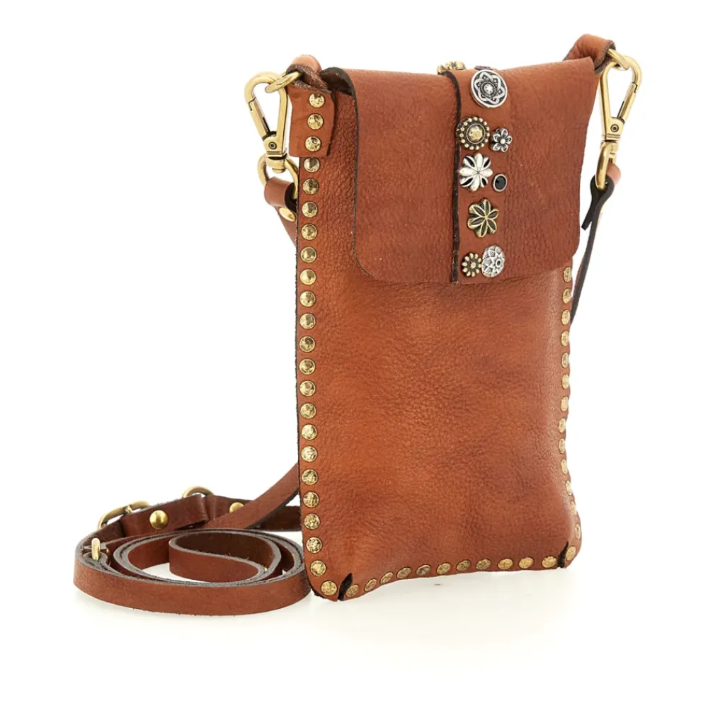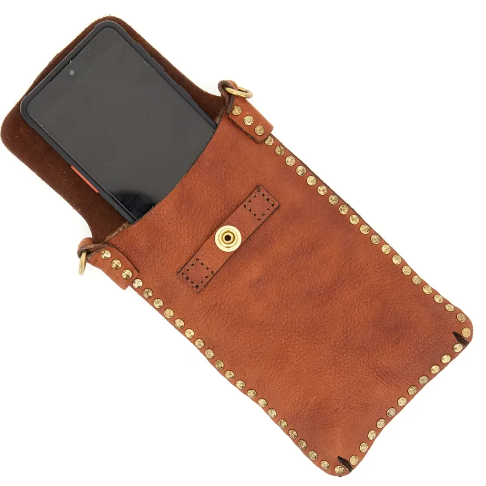 Handytasche aus cognacfarbenem Leder mit Nieten