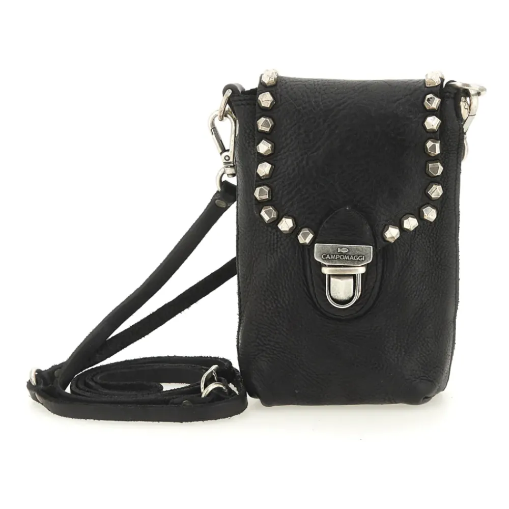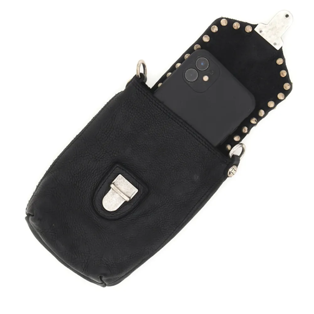 Betulla Handytasche aus schwarzem Leder mit Nieten