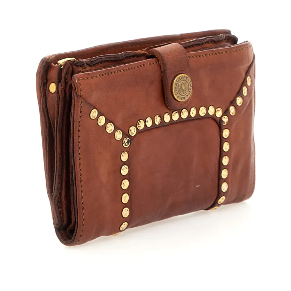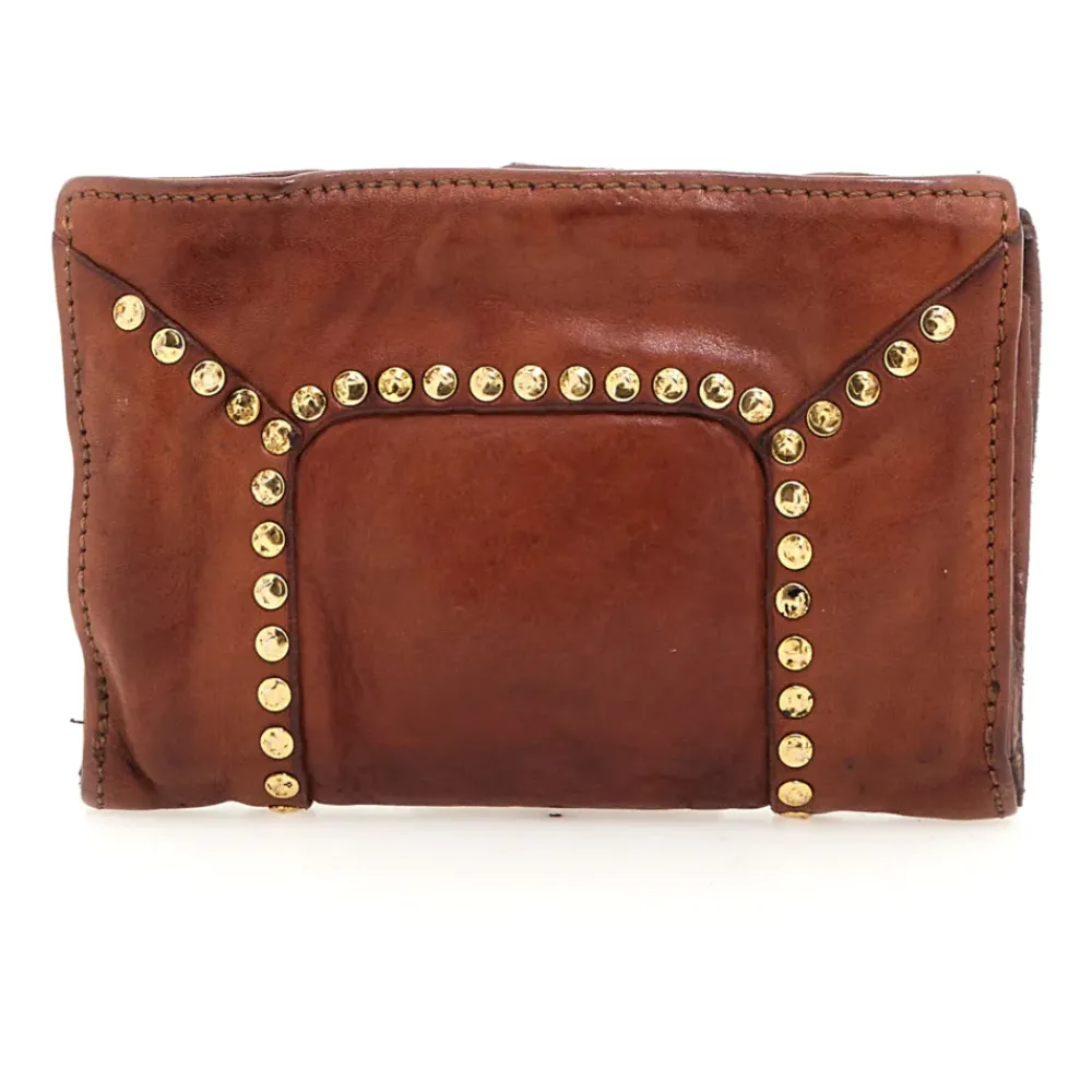 Brieftasche aus cognacfarbenem gefärbtem Rindsleder mit Nieten