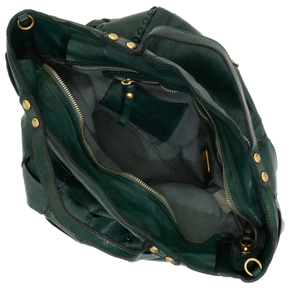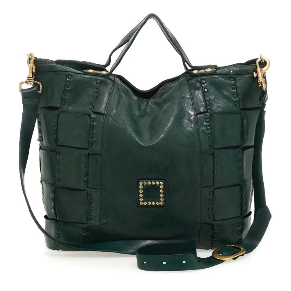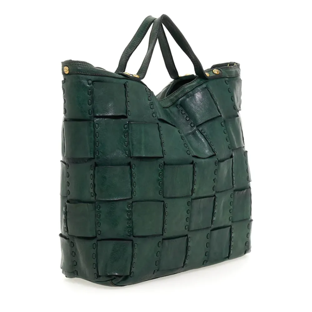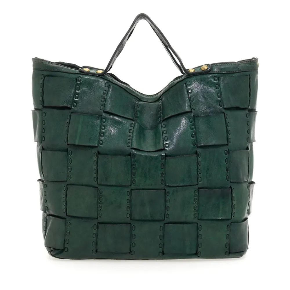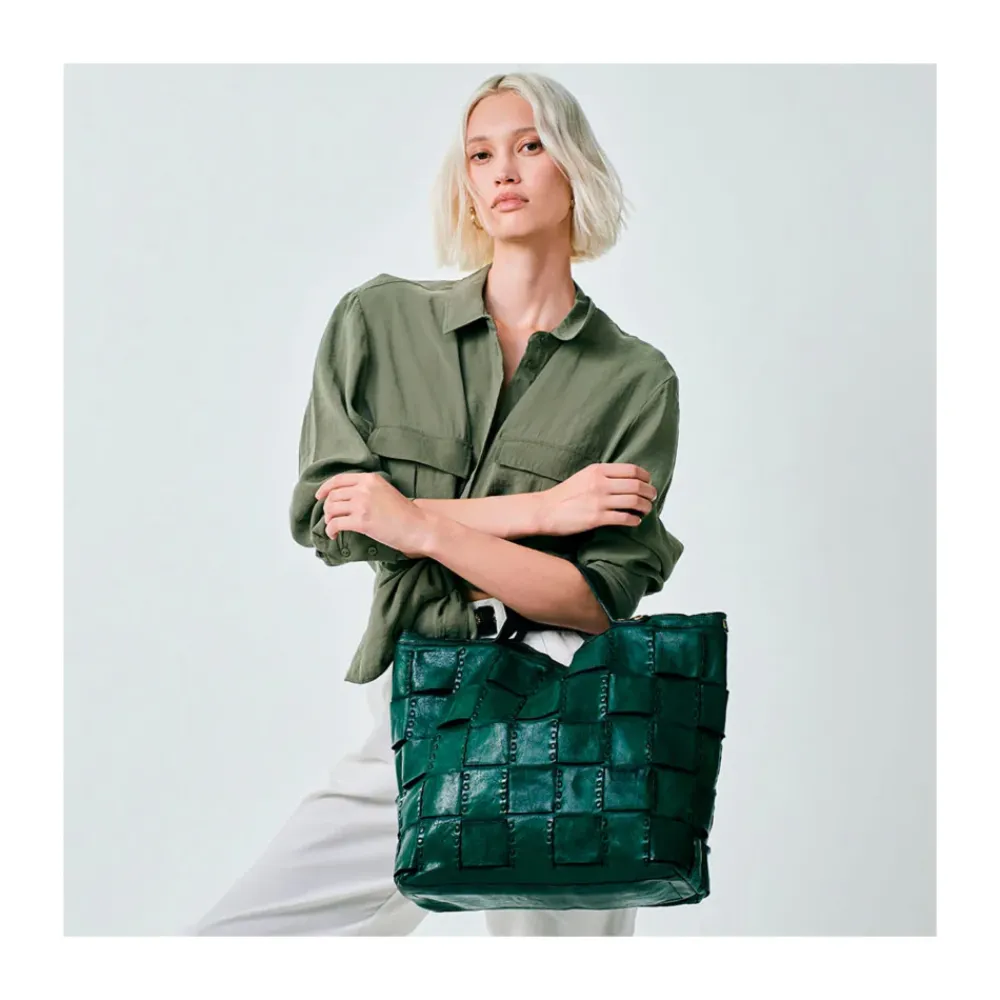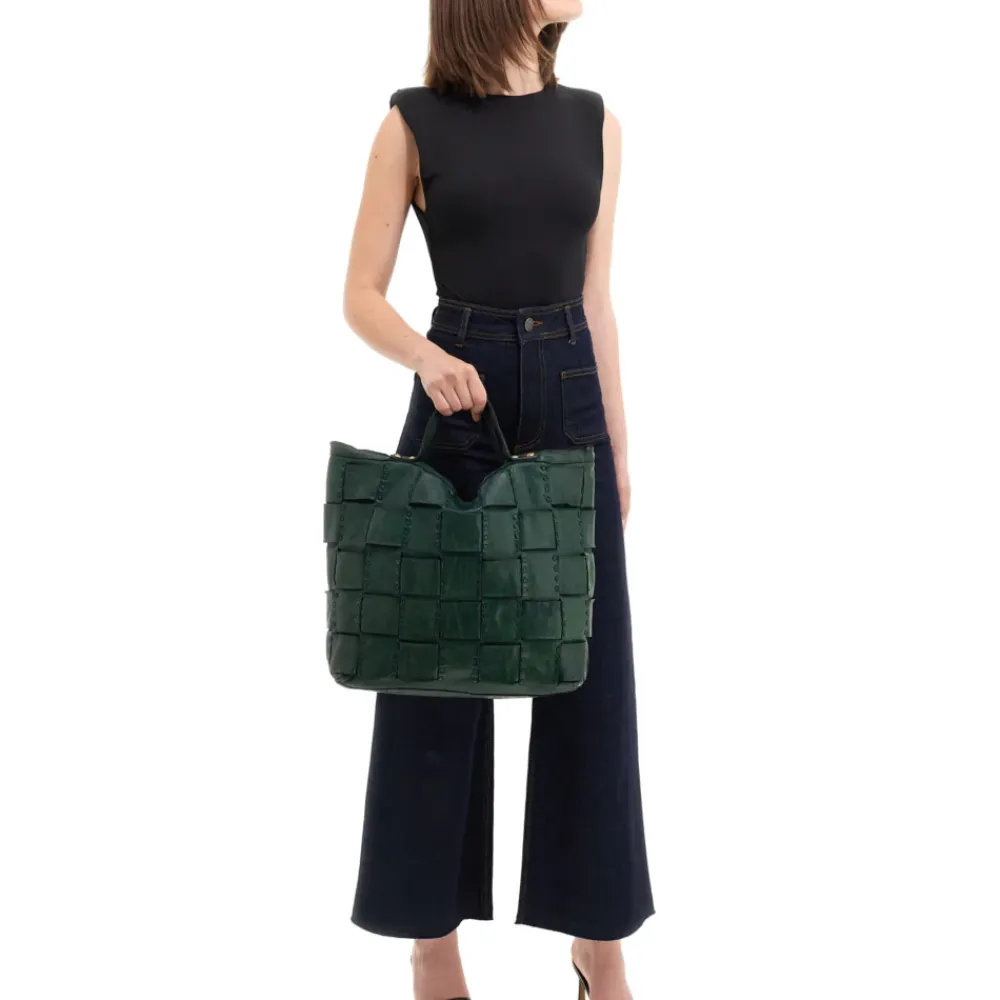 Shopper „Edera“ aus geflochtenem Leder in Flaschengrün