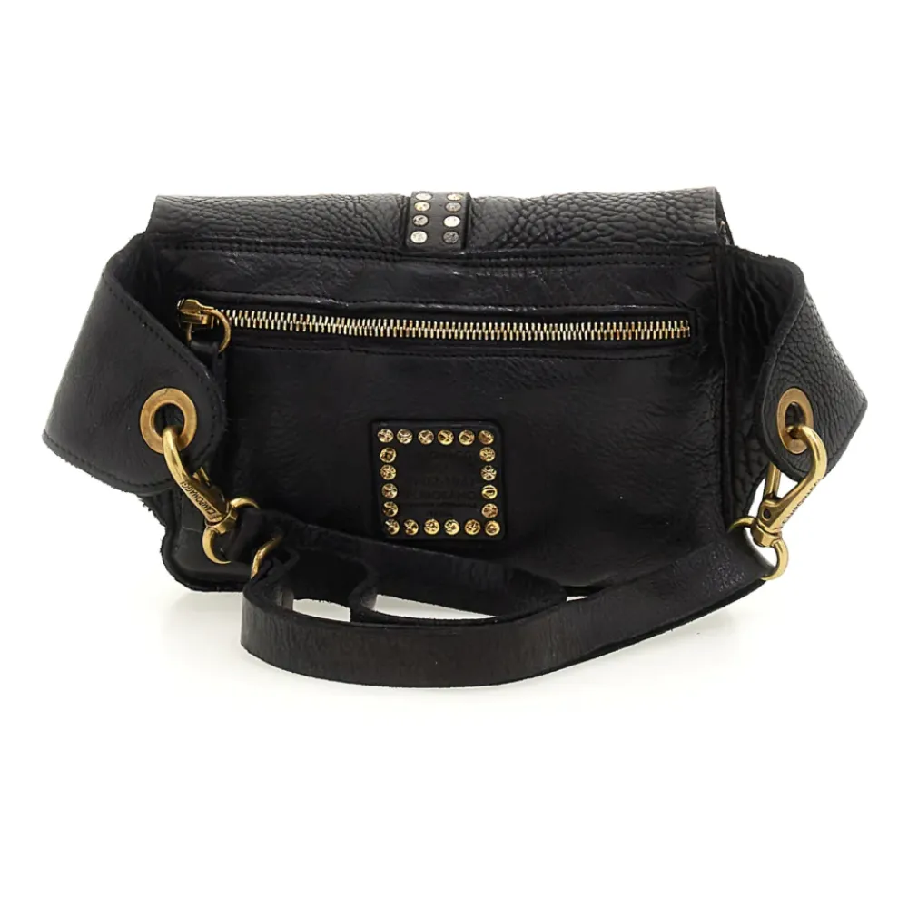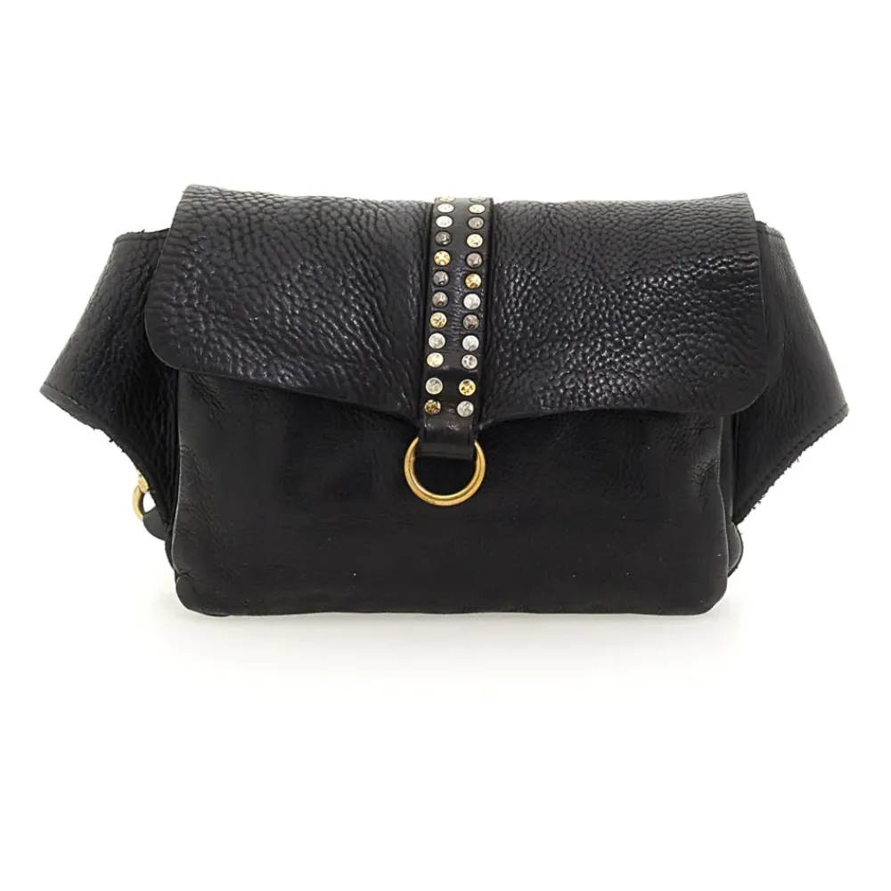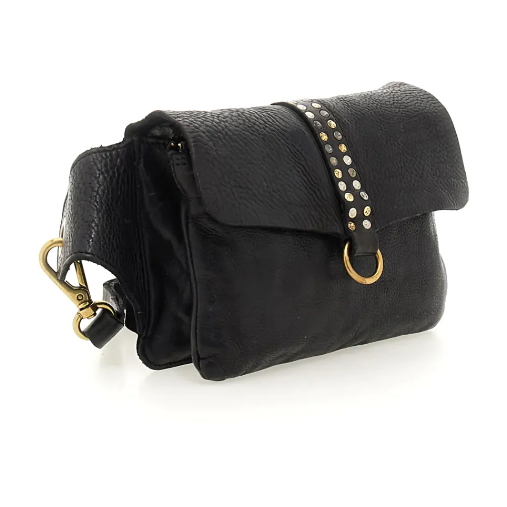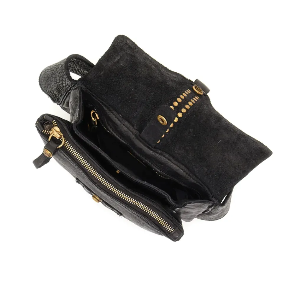 Umhängetasche „Kura“ aus schwarzem Leder mit Nieten
