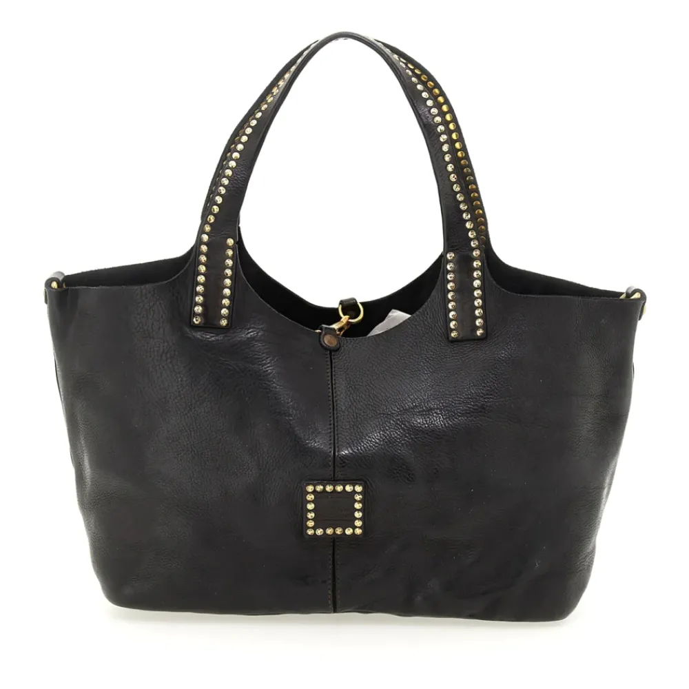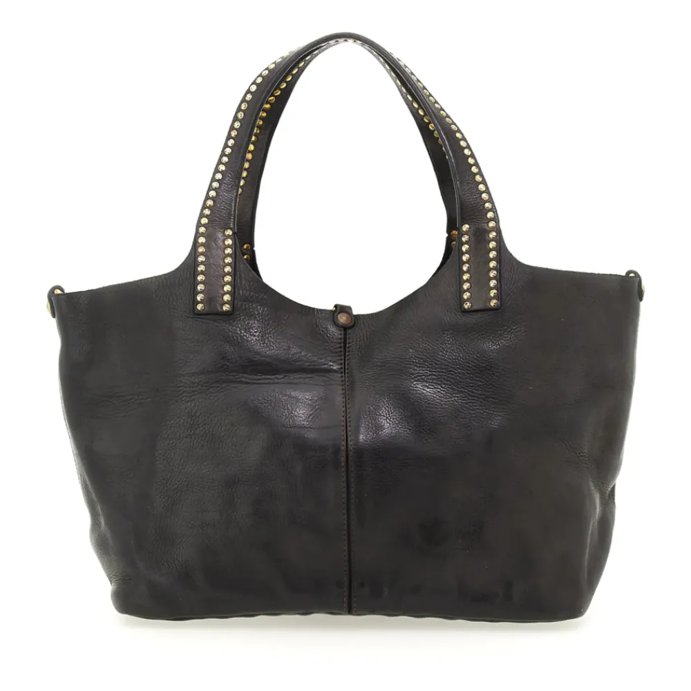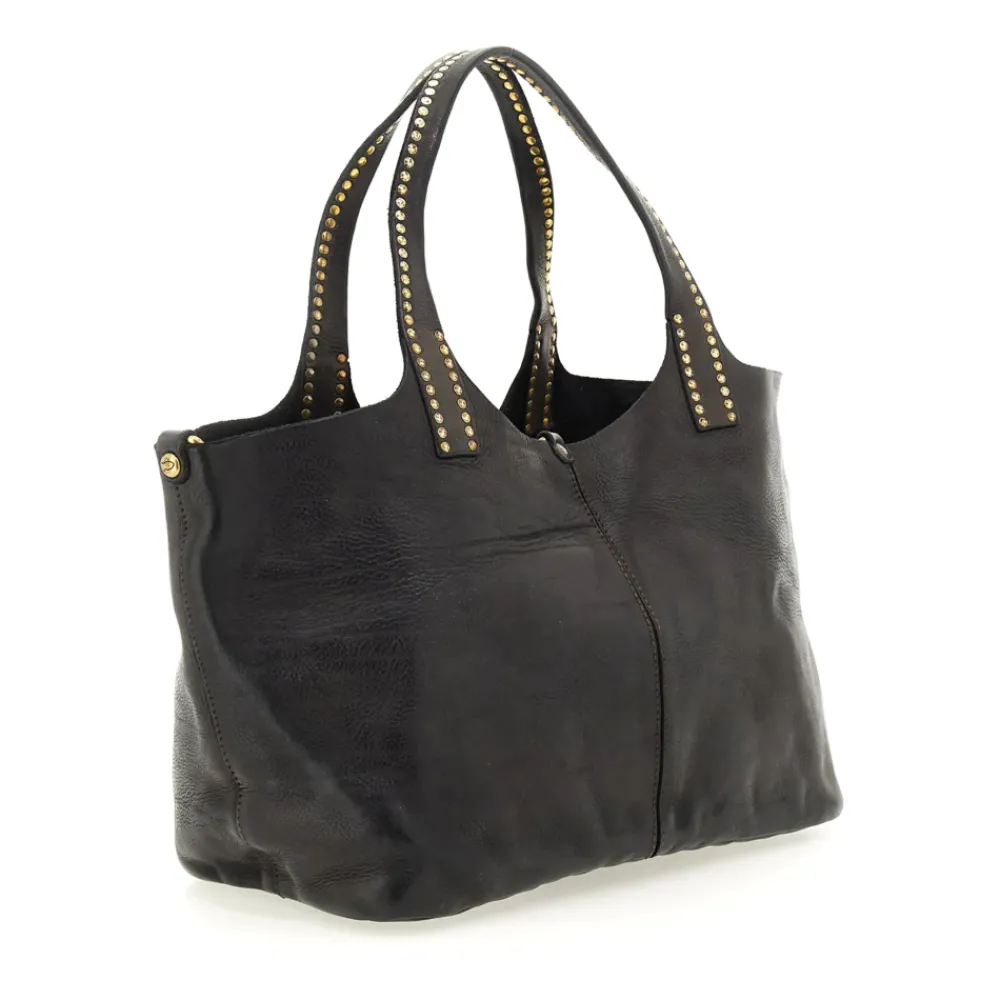 Vielseitige und rapräsentative Linie, mit Taschen, die mit dem typischen Campomaggi-Nieten verziert sind.