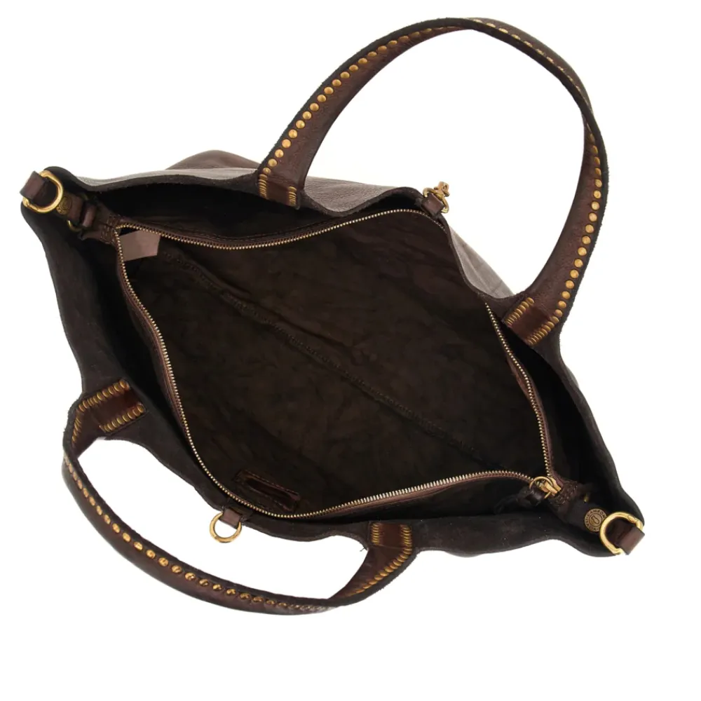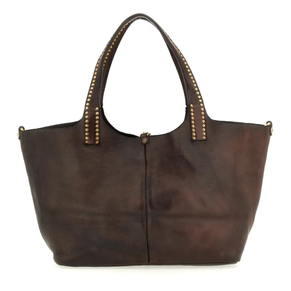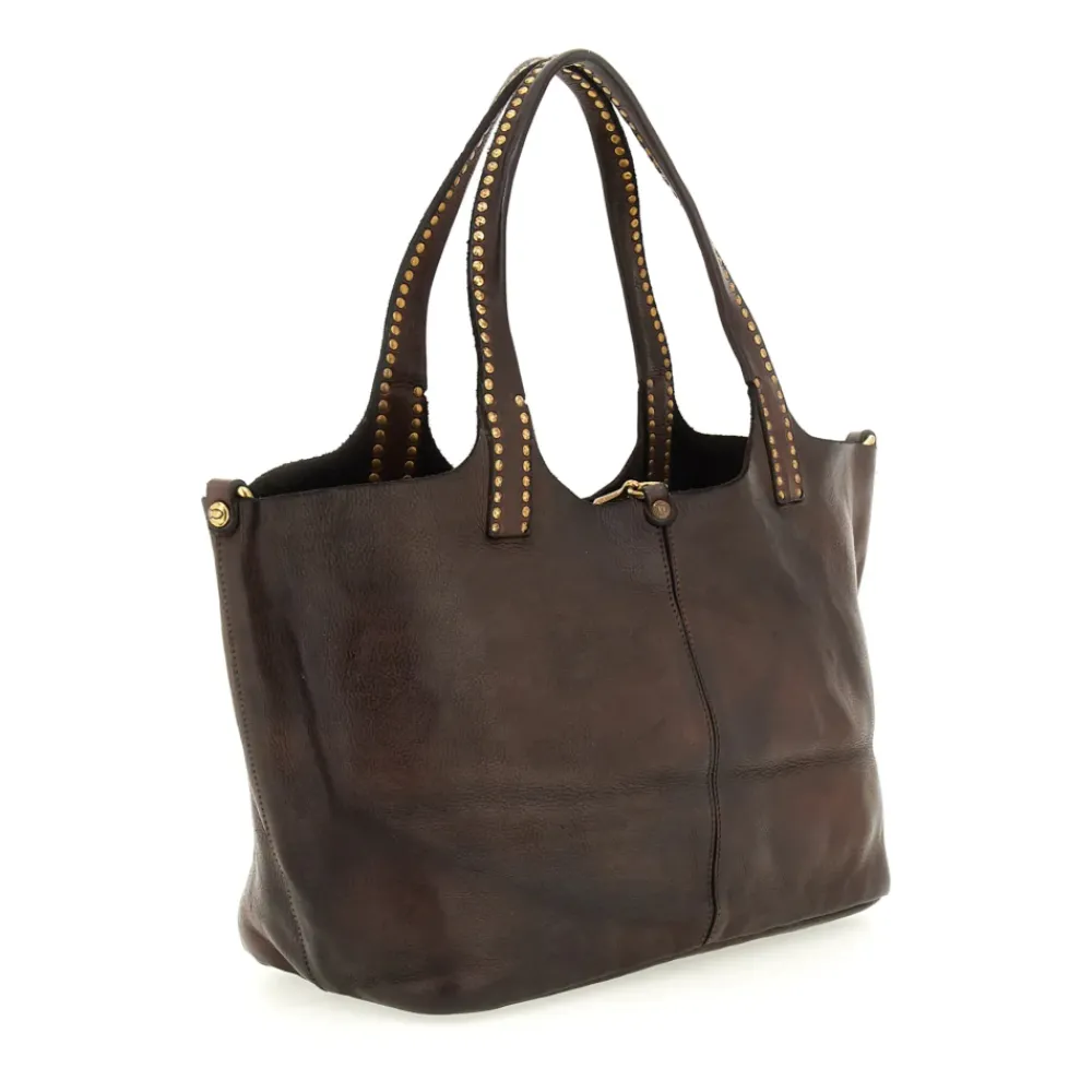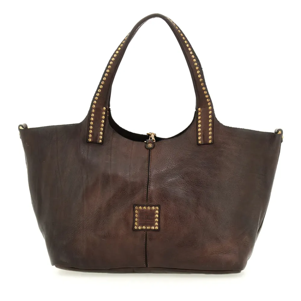 Vielseitige und rapräsentative Linie, mit Taschen, die mit dem typischen Campomaggi-Nieten verziert sind.