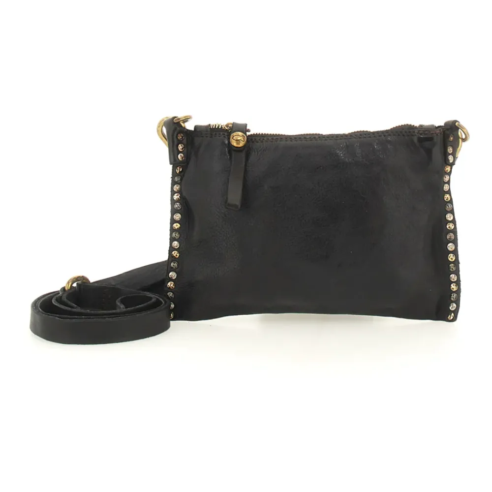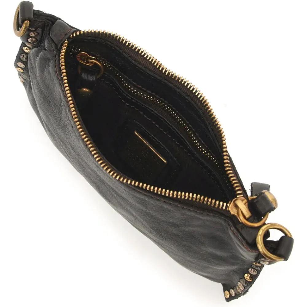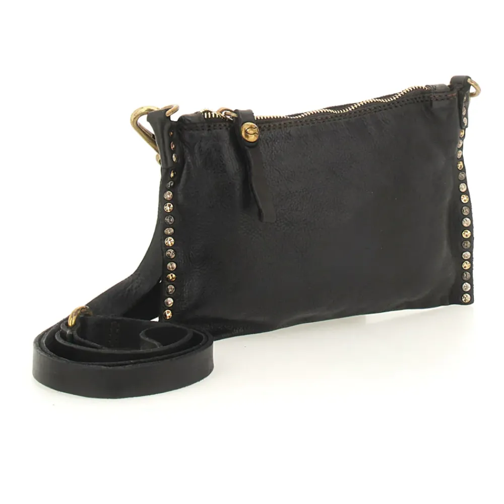 Kura Clutch aus dunkelbraunem Kopf gefärbtem Leder mit Nieten