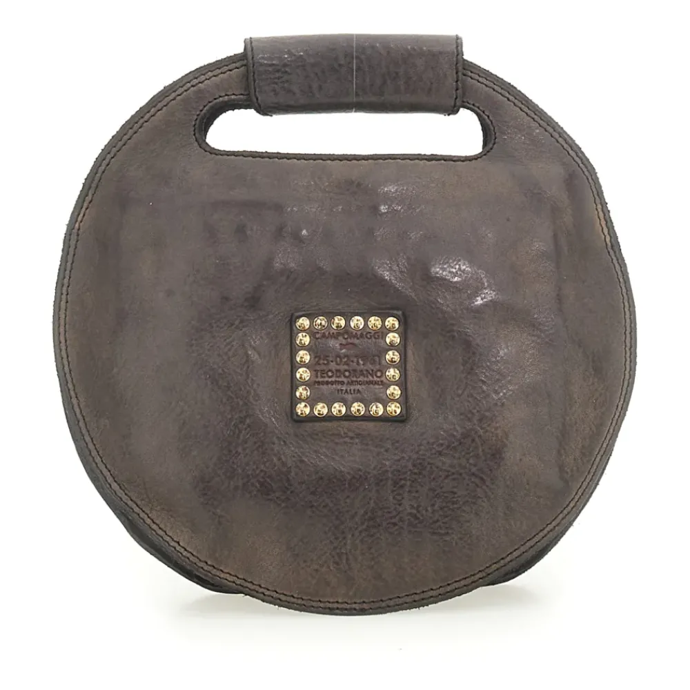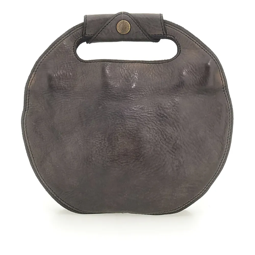 Runde Aktentasche „Levante“ aus grauem Kopf gefärbtem Rindleder