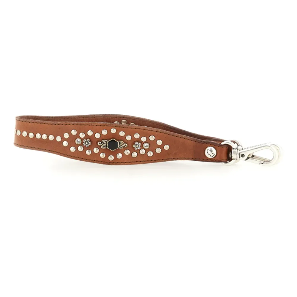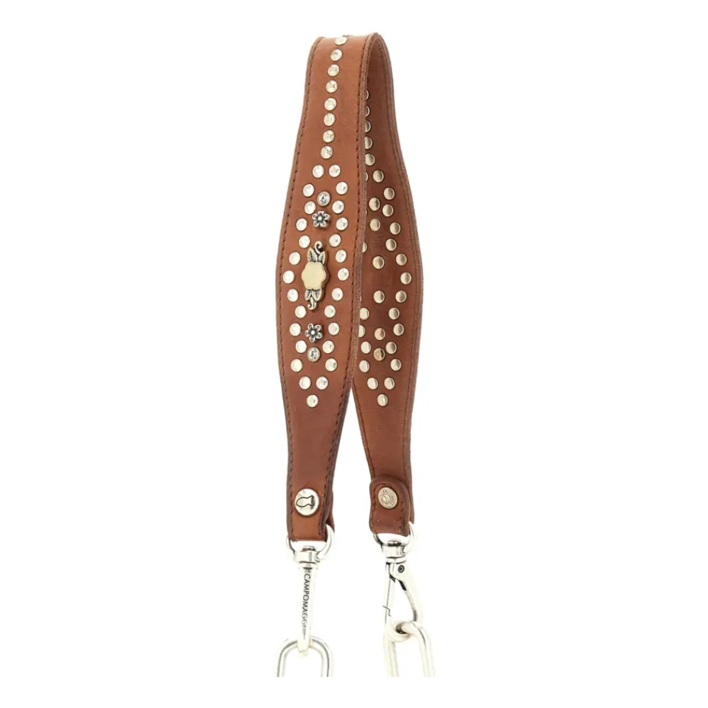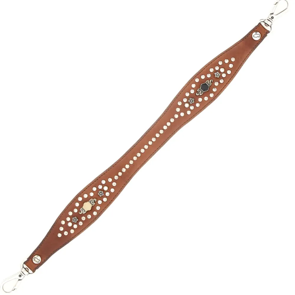 Schulterriemen „Lilia“ aus cognacfarbenem Leder mit Schmucknieten