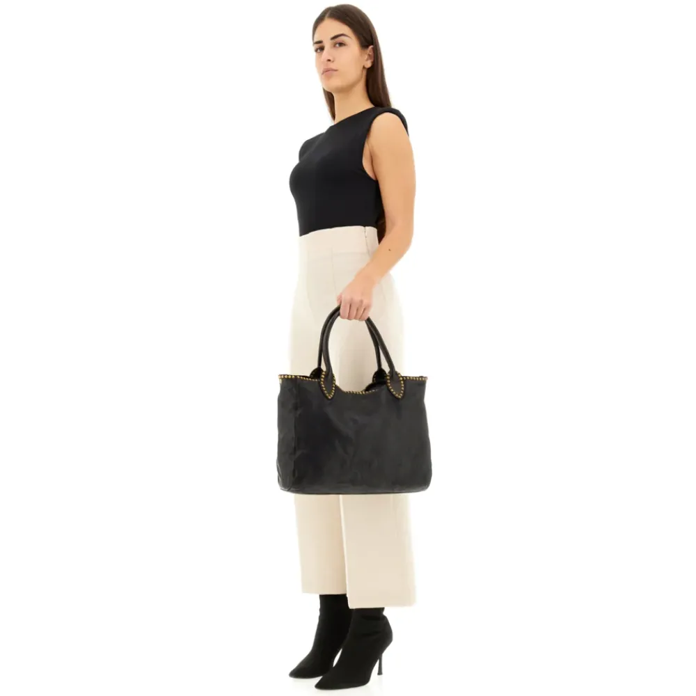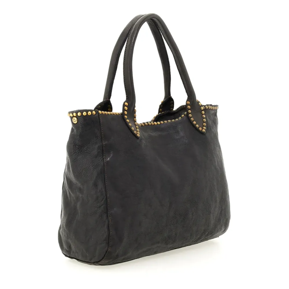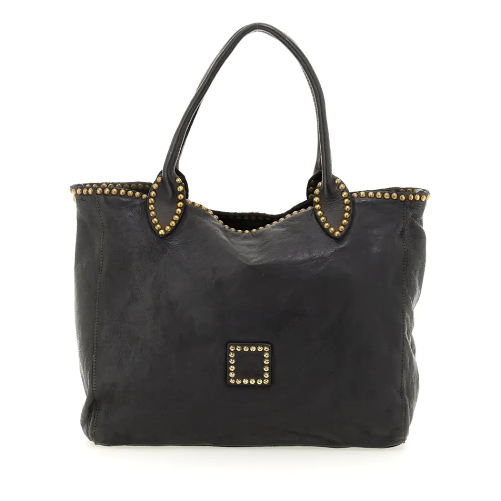 Diese Linie besteht aus Taschenmodellen im Essential-Look, die mit einer Reihe von goldfarbenen, halbkugelförmigen Nieten verziert sind.