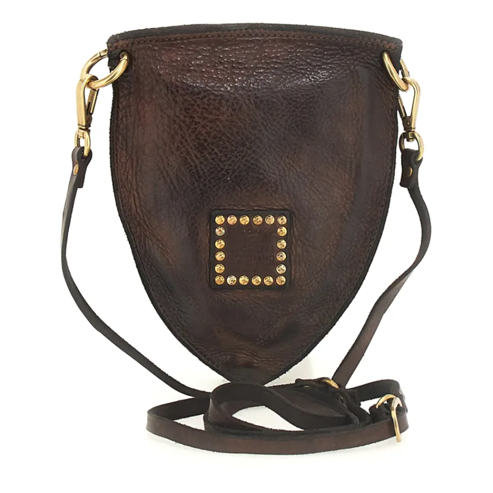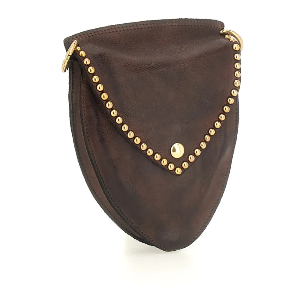 Umhängetasche aus dunkelbraunem Leder mit Nieten