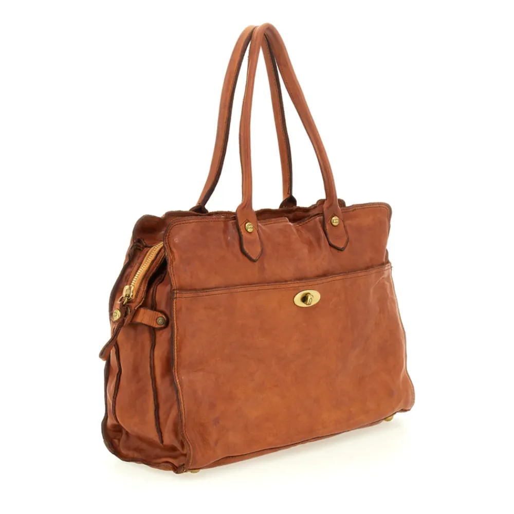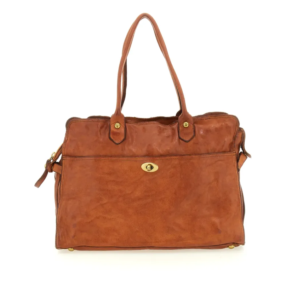 Shopper „Minimal“ aus cognacfarbenem Leder