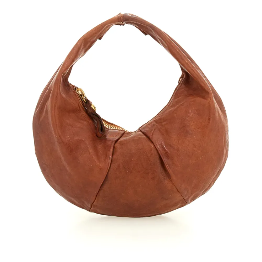 Schultertasche aus cognacfarbenem Leder