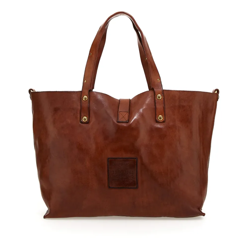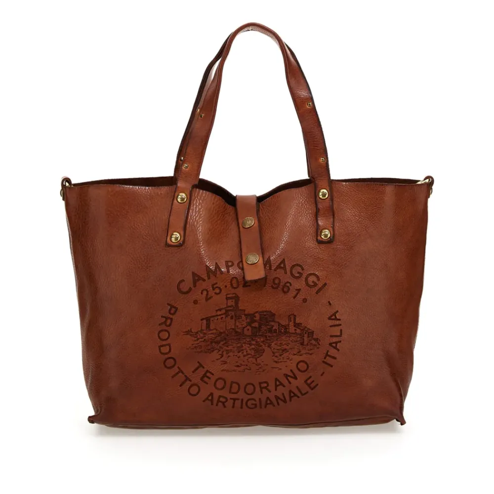 Shopper „Teodorano“ aus cognacfarbenem gefärbtem Rindsleder mit Raster