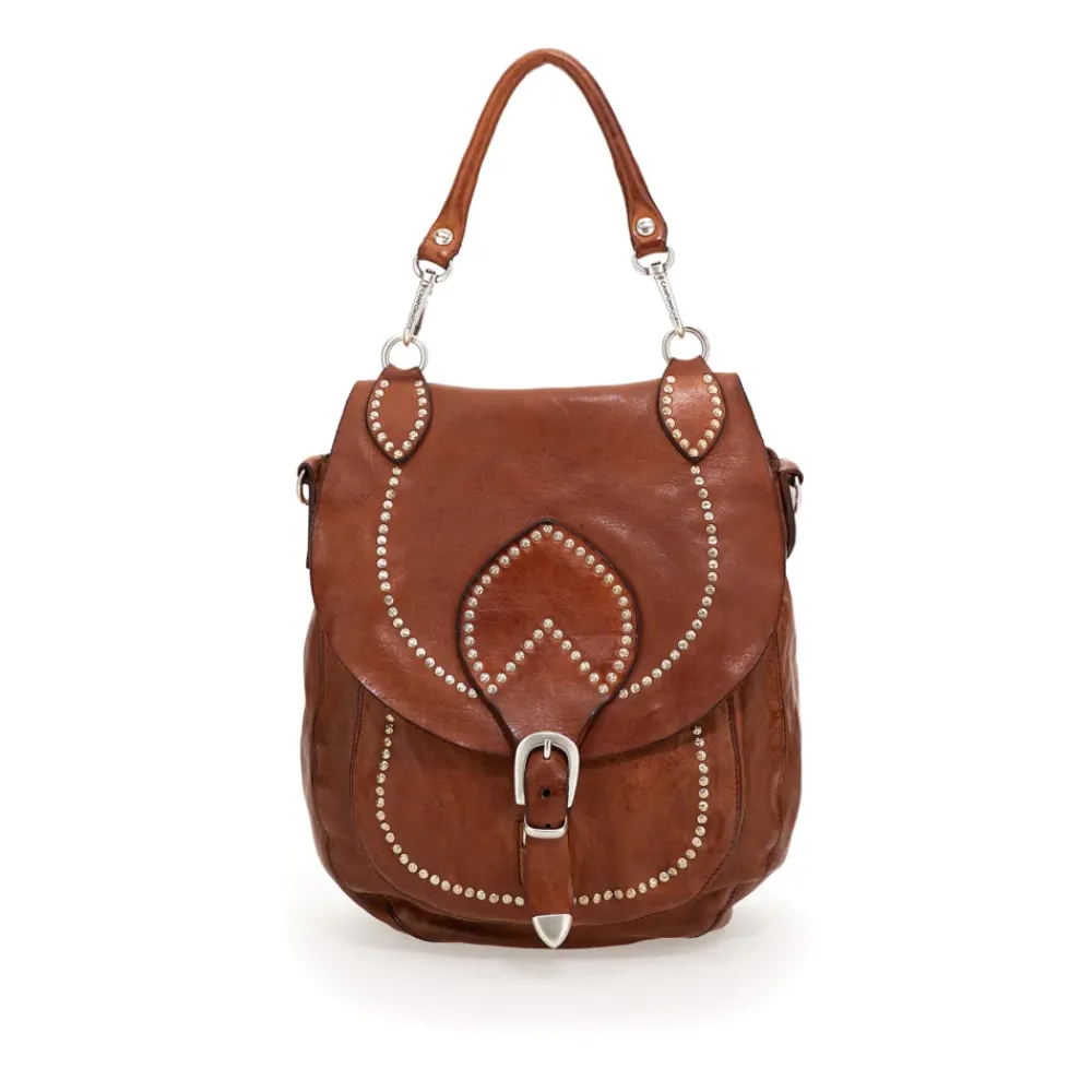 Schultertasche „Texana“ aus Leder in Cognac mit Nieten