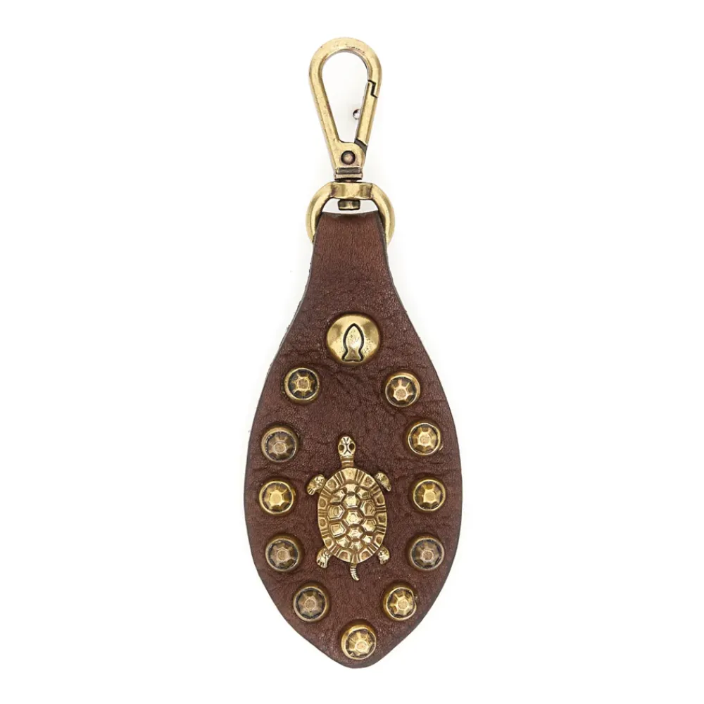 Schlüsselanhänger aus Leder in Moro mit Ziernieten