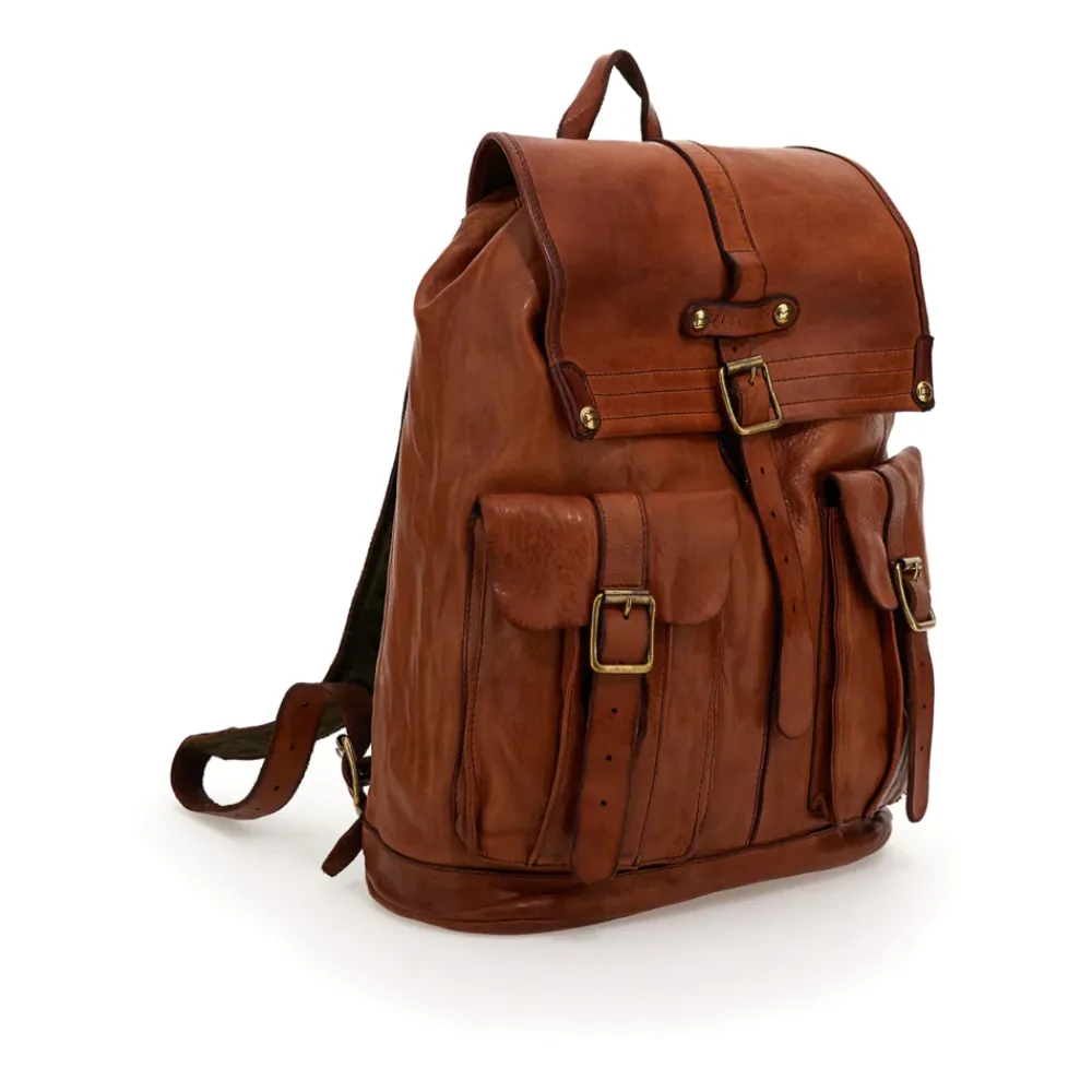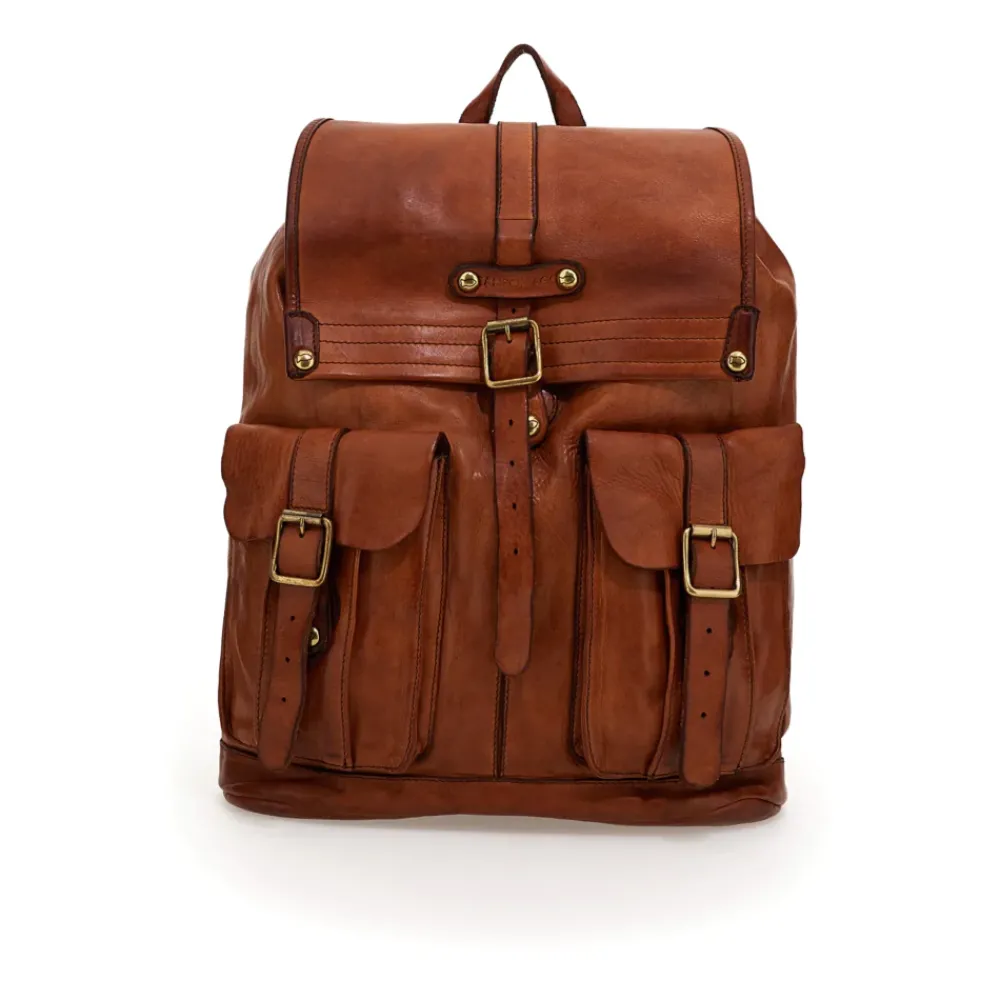 Rucksack „Londra“ aus cognacfarbenem gefärbtem Rindsleder