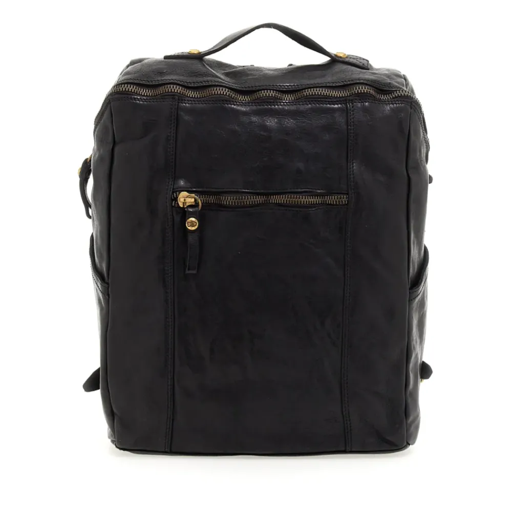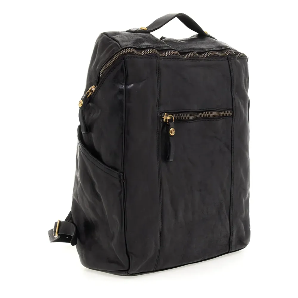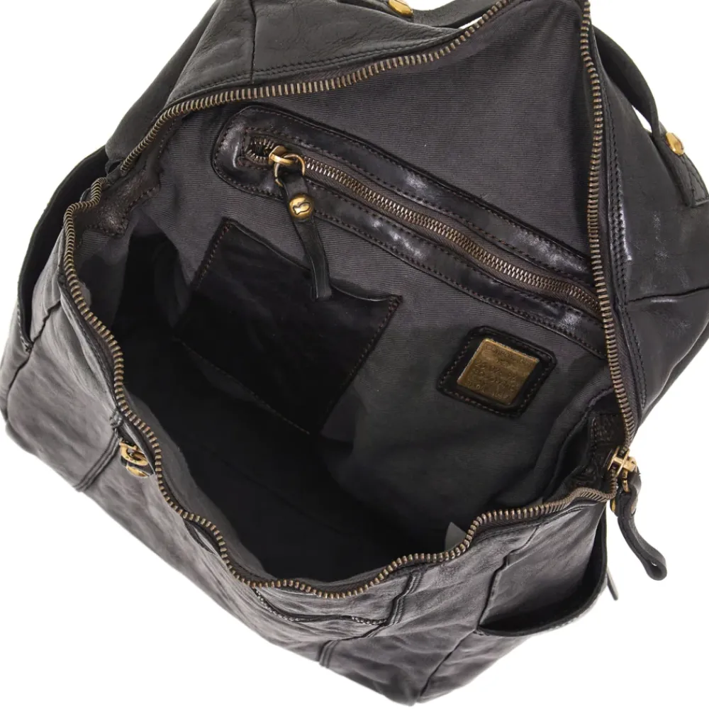 Stückgefärbtes natürliches Rindsleder, Innenfutter aus Baumwolle, Reißverschluss, offene und mit Reißverschluss verschließbare Außentaschen, verstellbare Schulterriemen. Die Linie „Sambuco“ ist praktisch und funktional. Die Modelle sind für alltäglichen Gebrauch geeignet.Auf dem vorderen Quadrant befinden sich Taschen mit Reißverschluss aus stückgefärbtem Rindsleder.