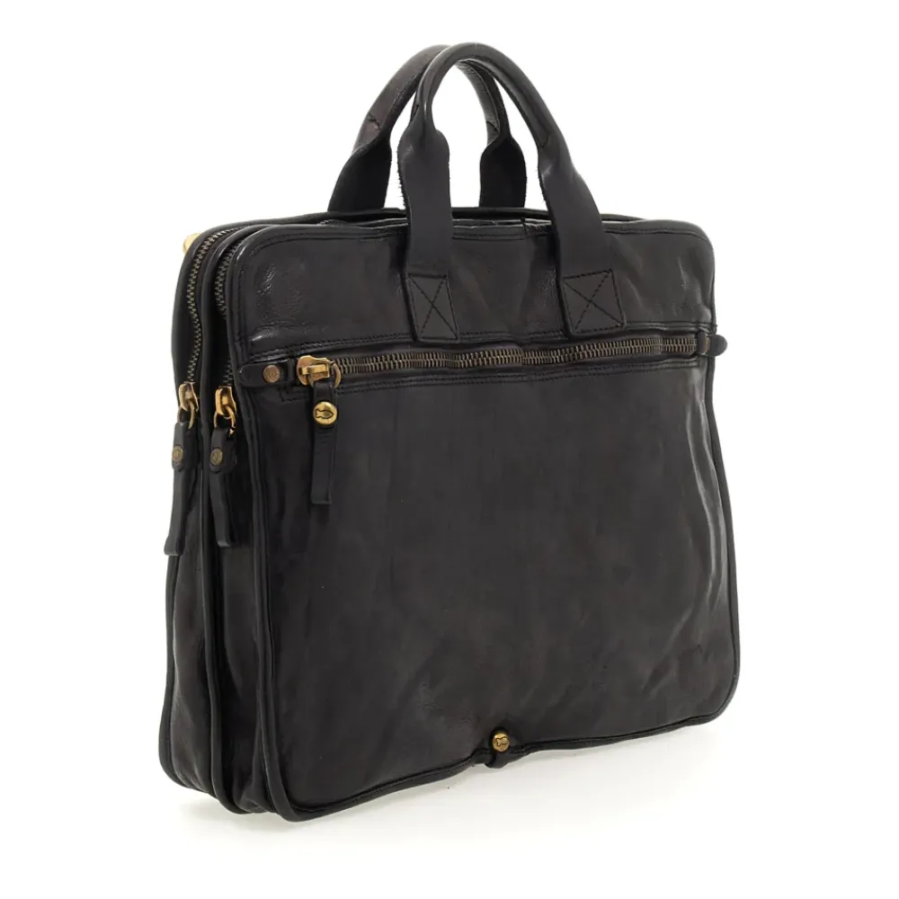 Umhängetasche „Agnese“ aus schwarz gefärbtem Rindsleder mit Nieten