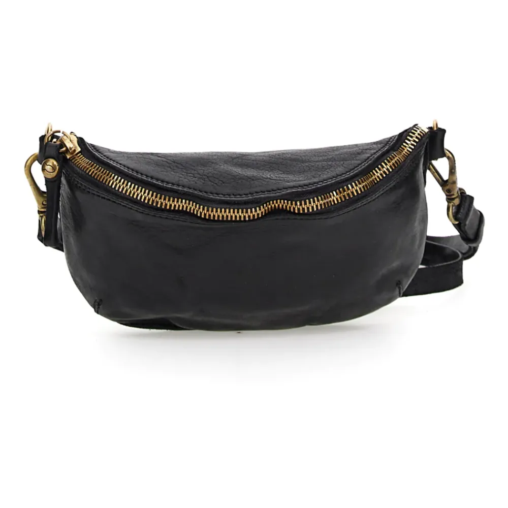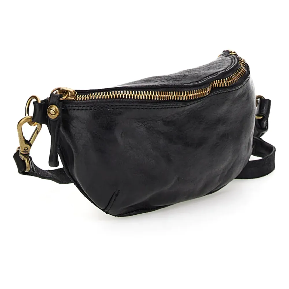 Gürteltasche mit verstellbarem Schulterriemen, vollständig gefüttert, Reißverschluss. Hergestellt aus natürlichem, durchgefärbtem Rindsleder. Inklusive Staubbeutel aus Baumwolle und Pflegeset für Cremebeutel. Made in Italy.