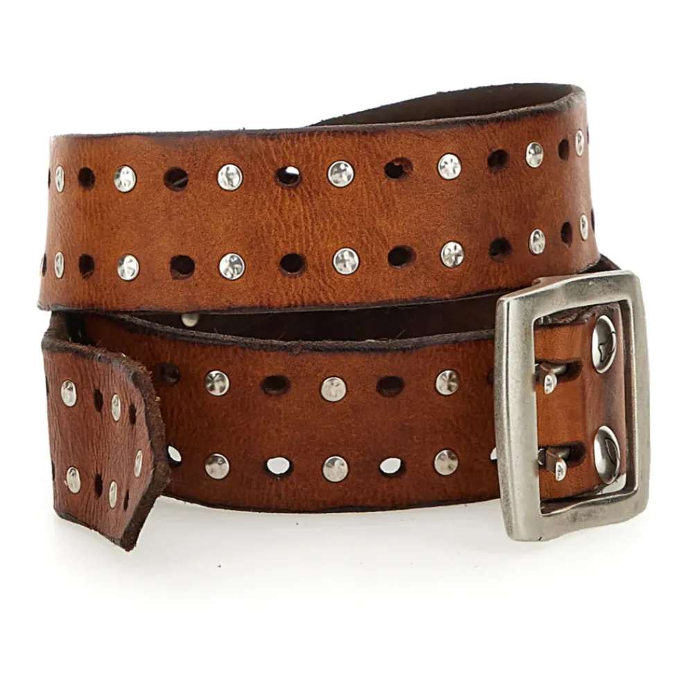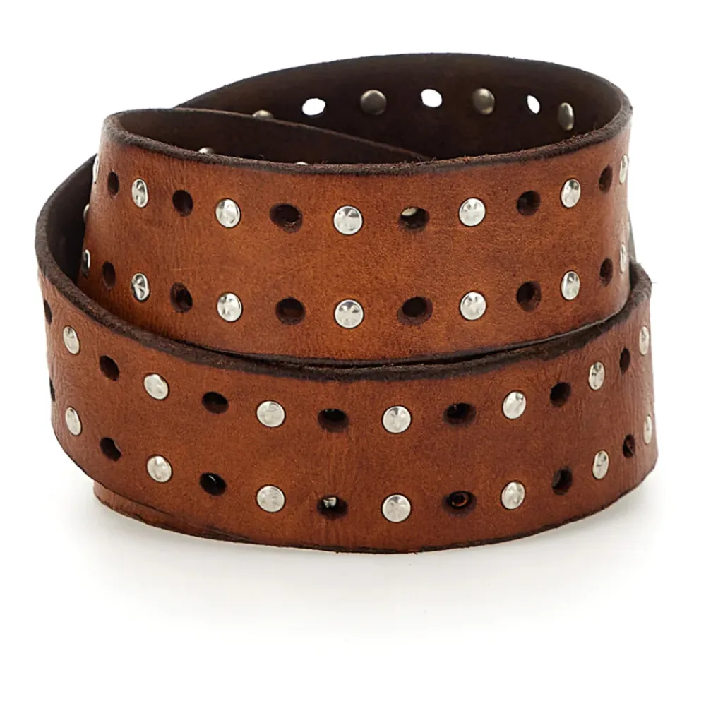 Verstellbarer Gürtel mit Nieten und Schnallenverschluss. Hergestellt aus natürlichem, durchgefärbtem Rindsleder. In Italien hergestellt.