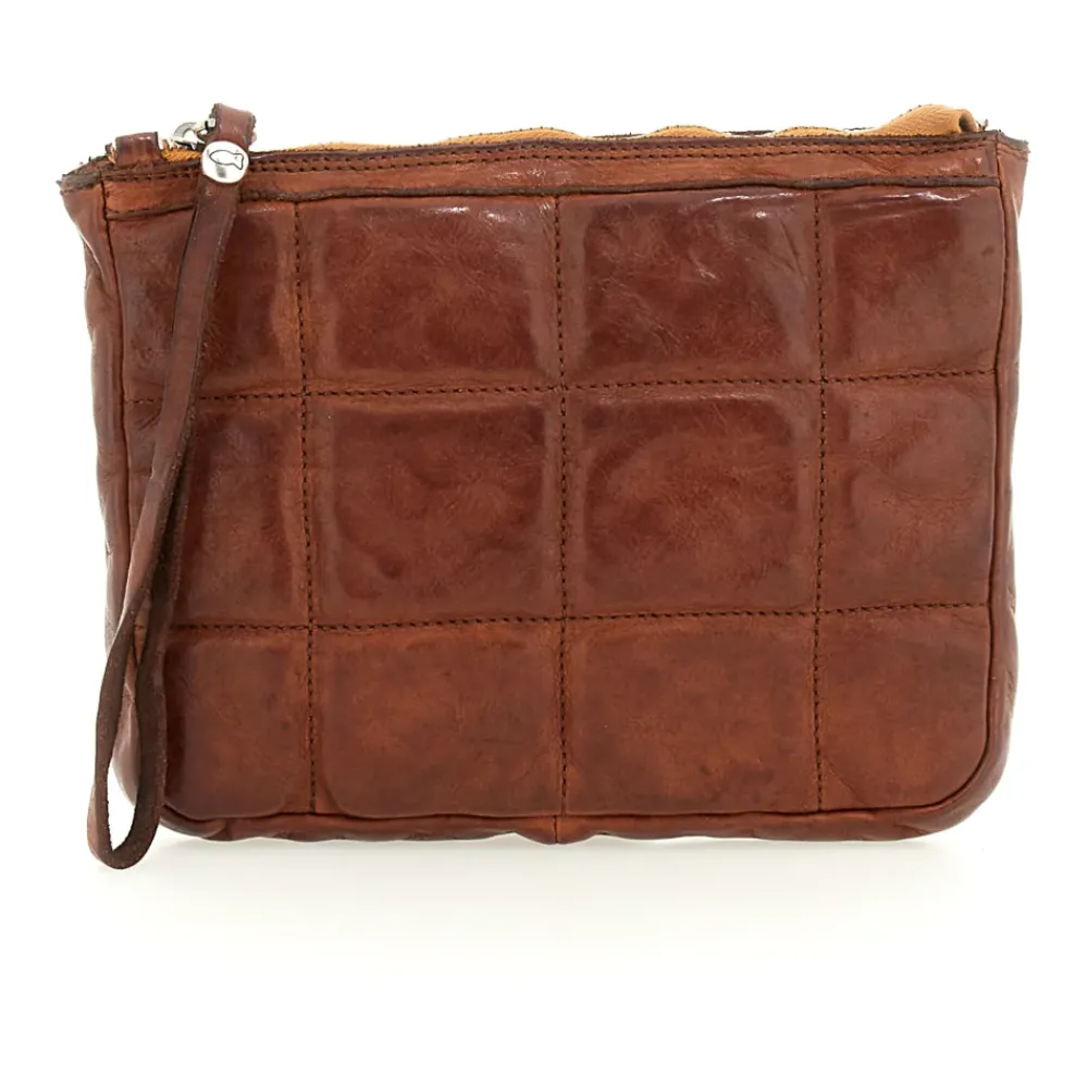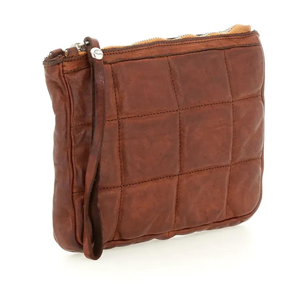Clutch-Tasche aus cognacfarbenem Leder mit Metalassé-Muster